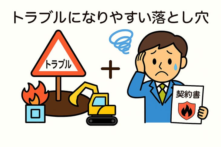 工事範囲・仕様 建物・付帯物・樹木・地中物の取り扱いを明記 地中障害物や残置物が「別途」になっておらず紛争化