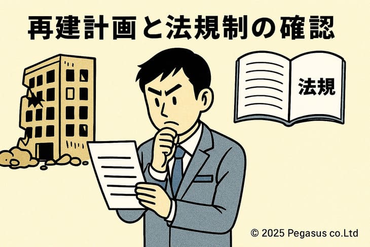 東京都での再建は、建築確認(特定行政庁または指定確認検査機関の審査)を経て着工します。確認済証の交付前に本体工事に着手しないこと、設計の根拠図書(防火・構造・省エネ等)の整合を確実にすることが重要です。