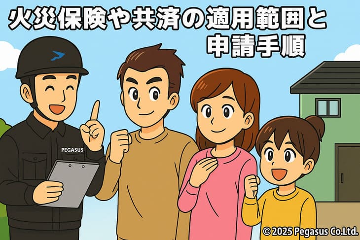 火災発生の連絡は契約先の保険会社(または共済)にできるだけ早く行い、担当者や鑑定人(アジャスター)の訪問日程を調整します。査定が終わる前に本格的な撤去や原状変更をしてしまうと、損害認定ができず、支払対象外となるリスクがあります。緊急の安全確保(危険部位の除去・仮囲い・防炎シート養生など)が必要な場合は、その必要性と範囲を事前に保険会社へ相談し、写真・領収書・作業報告を残してください。